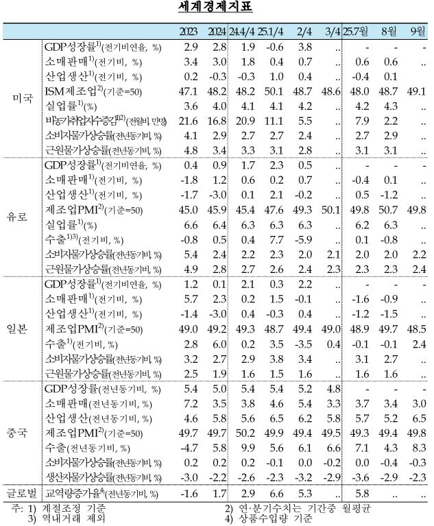 ㅇ 세계경제를 보면, 미국 관세 인상의 영향이 가시화되면서 성장세가 완만히 둔화 되고 물가경로는 국가별로 차별화될 전망이다.