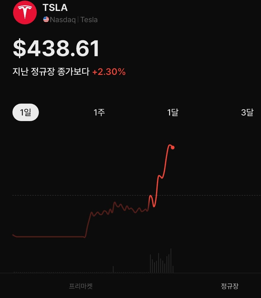 시장 전체가 조정받는 것처럼 보였지만, 여전히 시장은 매수세가 강한 것 같습니다. 그 중 특히 테슬라 주식은 400대 초반에서 매수세가 상당하네요.