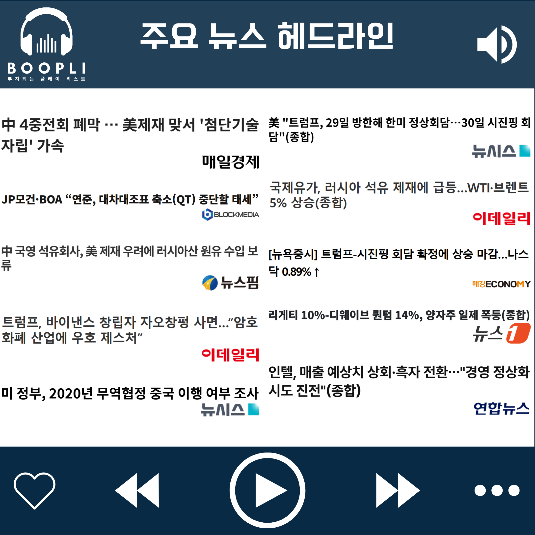 오히려 캐럴라인 레빗 백악관 대변인이 트럼프 대통령과 시진핑 주석의 정상회담(30일) 일정을 공식 확정하자, 무역 갈등 완화 기대가 부각되며 3대 지수는 상승폭을 확대