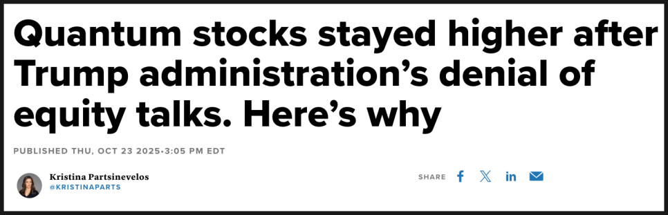 결국 이번 사안이 단순한 ‘오보 해프닝’이 아니라 정부와 기업 간 해석 차이 혹은 ‘공식화 전 단계의 협상’일 가능성에 무게가 실리는 모습인데요. 동시에 CNBC는 이 발언 이후에도 양자 기업들의 주가가 하락하지 않고 강세 흐름을 유지했다는 점에 주목했습니다.