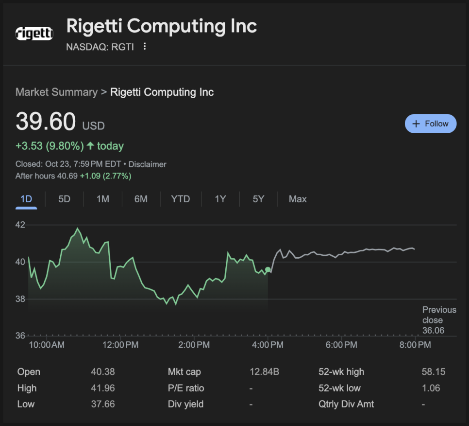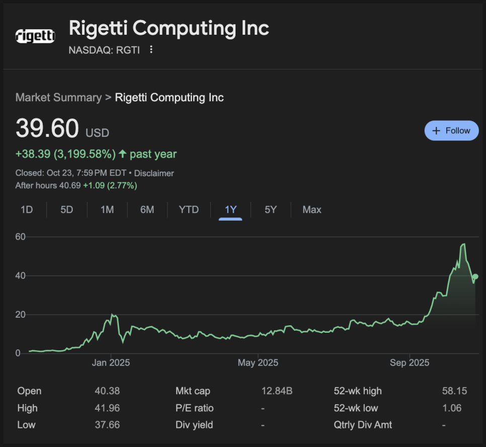 이후 반전이 또 한 번 등장하는데요. 리게티 컴퓨팅(Rigetti Computing) 측이 CNBC와의 인터뷰에서 “월스트리트저널 보도는 사실”이라고 확인하면서 분위기가 또 한 번 반전됐습니다.