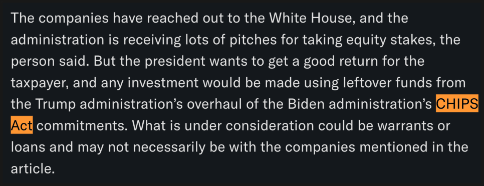 또한 이 자금은 트럼프 행정부가 바이든 행정부 시절의 CHIPS Act 자금을 재조정해 마련한 잔여 재원에서 충당될 예정이라는 점도 언급됐습니다. 기존 보조금 정책에서 벗어나, 세금으로 투자 수익을 직접 노리는 행정부의 전략과도 맞닿아 있죠.