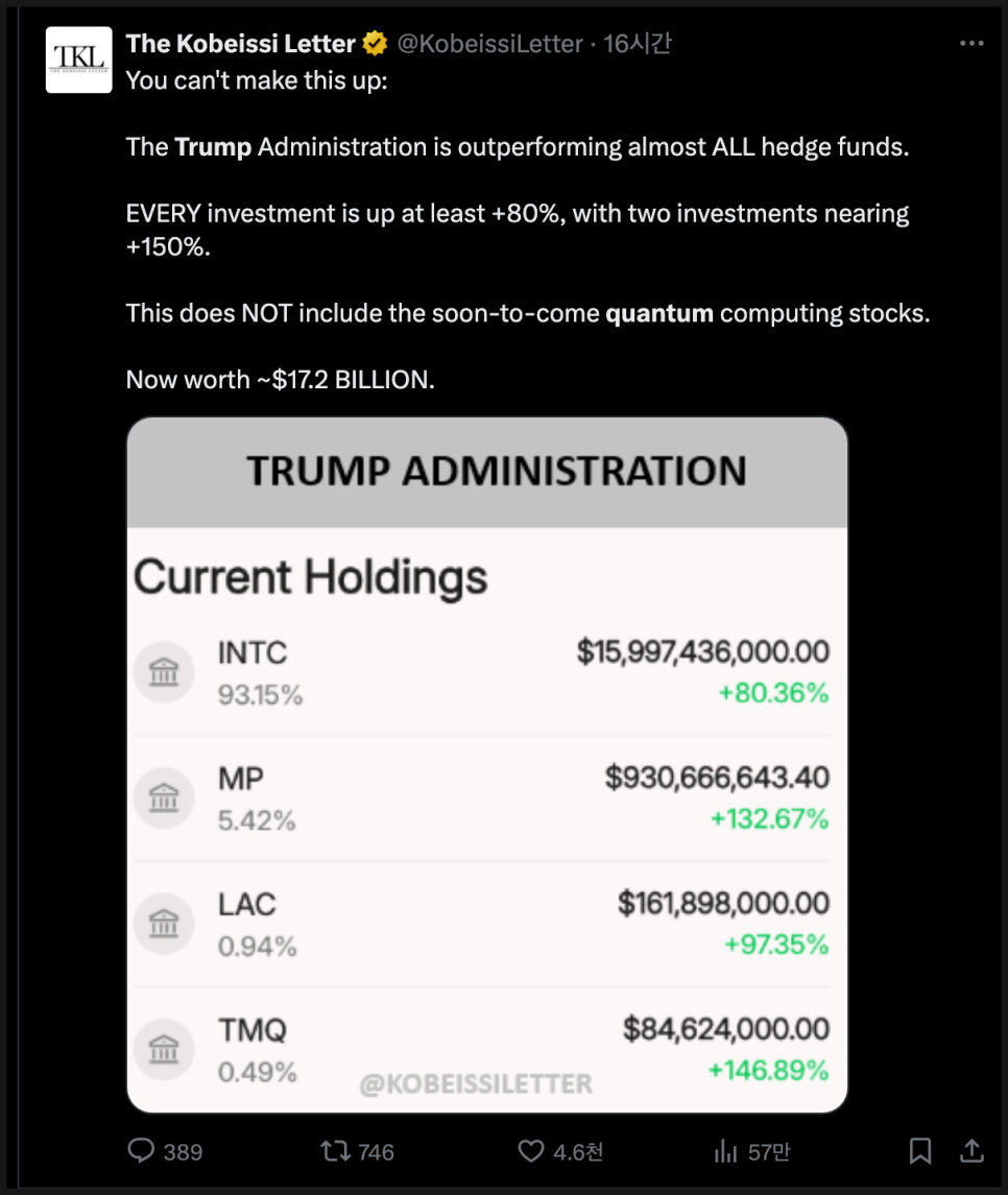실제로 트럼프 행정부는 최근 인텔 외에도 MP Materials, Trilogy Metals 등 핵심 자원 기업의 지분을 잇따라 취득하며, 사실상 ‘정부형 투자 포트폴리오’를 빠른 속도로 확장하고 있습니다. 이번 양자컴퓨팅 지분 논의는 이러한 기조의 연장선으로 해석될 수 있습니다.