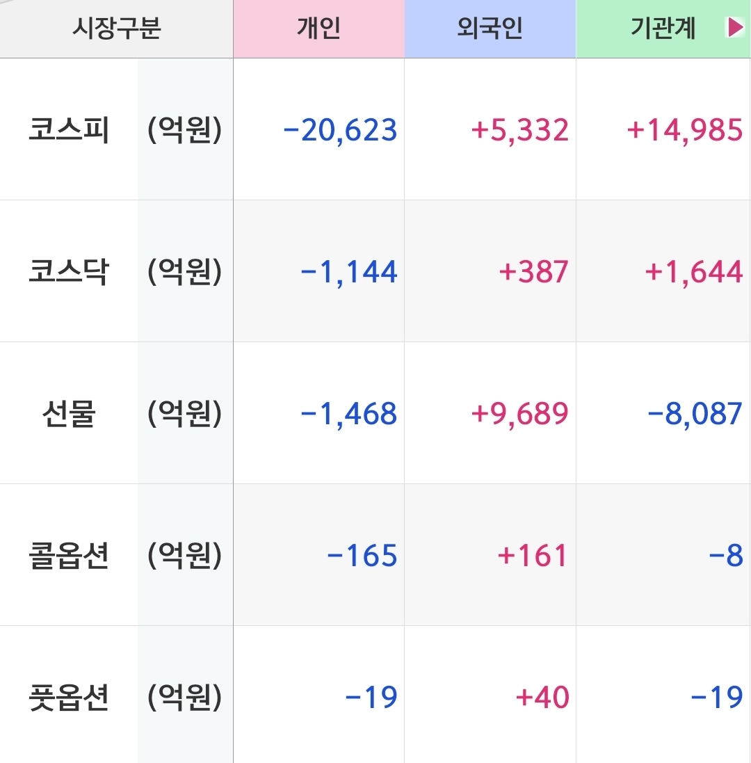 외인 선물 매수와 콜옵션 대량 풋 소량 매수로