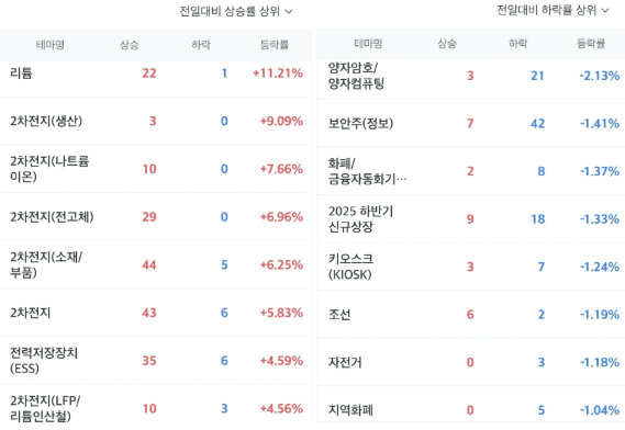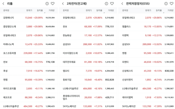 <리튬 2차전지 전고체 ESS 관련주 강세>