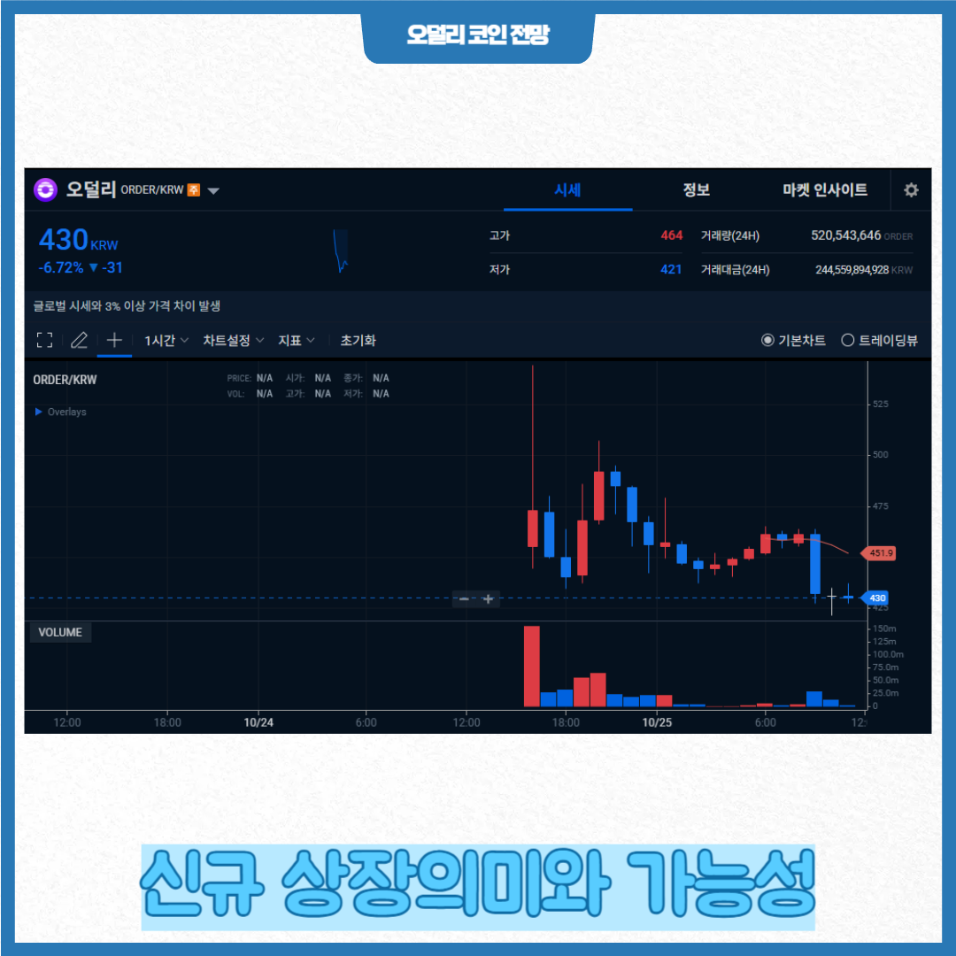 현재 오덜리 코인은 글로벌 거래소에 이미 상장되어 있으며, 한국 시장 진입 가능성이 높게 점쳐지고 있습니다.