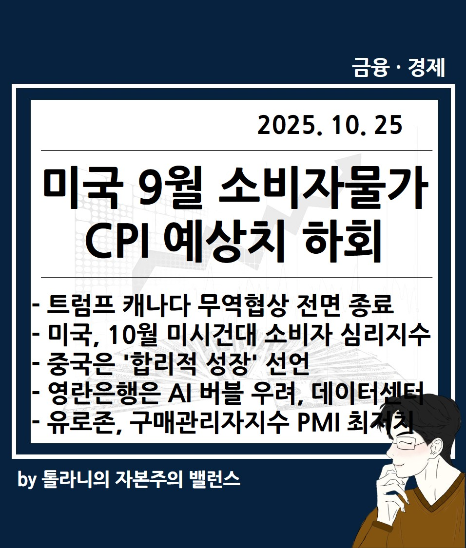 지금까지 '미국 9월 소비자물가지수 CPI 예상치 하회, 트럼프 캐나다 무역협상 전면 종료 발언 등 주요 국가 경제·금융 동향' 관련하여 알아보았는데요.