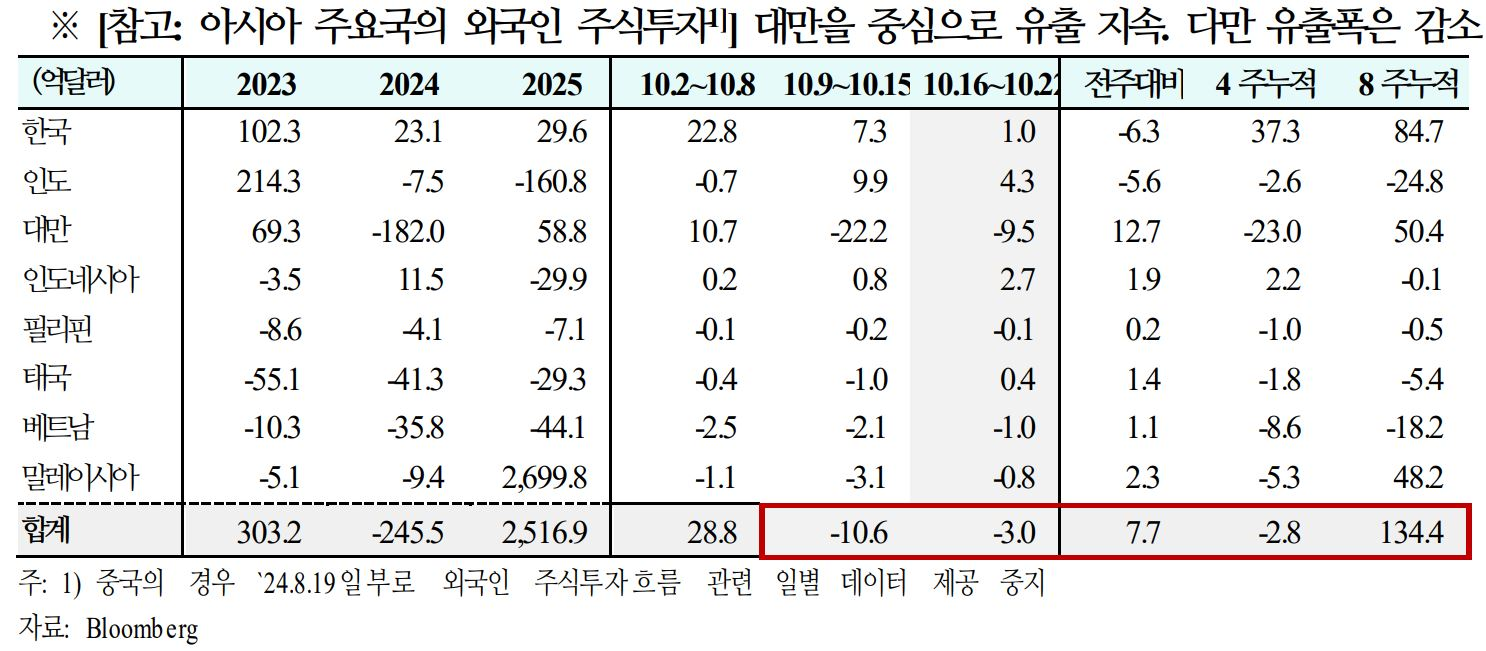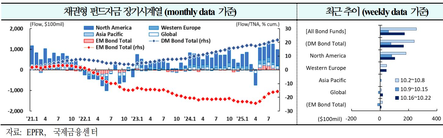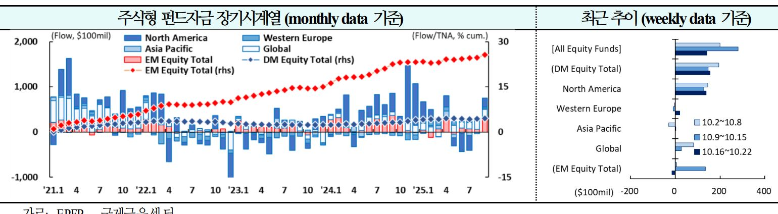 주간 글로벌 자금흐름(25년 10월 16일(목) ~ 10월 22일 (수))