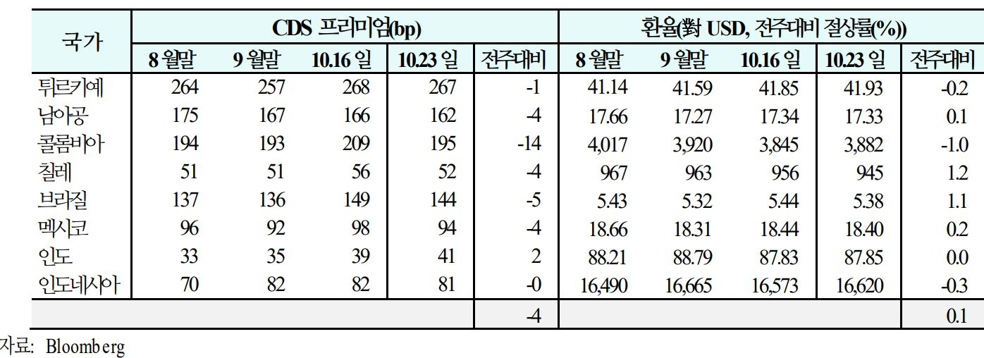 03. 주간 신흥국 CDS 및 환율 동향('25.10.17 (금) ~ 10.23 (목))