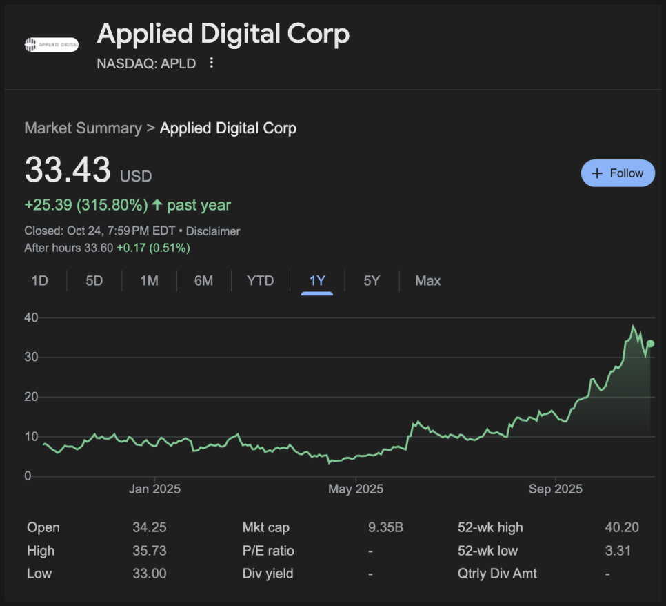 2025년 10월 25일 다룰 종목은 어플라이드 디지털(APLD)입니다.
