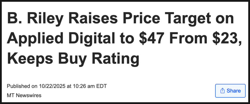 이번 발표 이후, 월가 주요 증권사들이 잇따라 어플라이드 디지털의 목표 주가를 상향 조정했습니다.