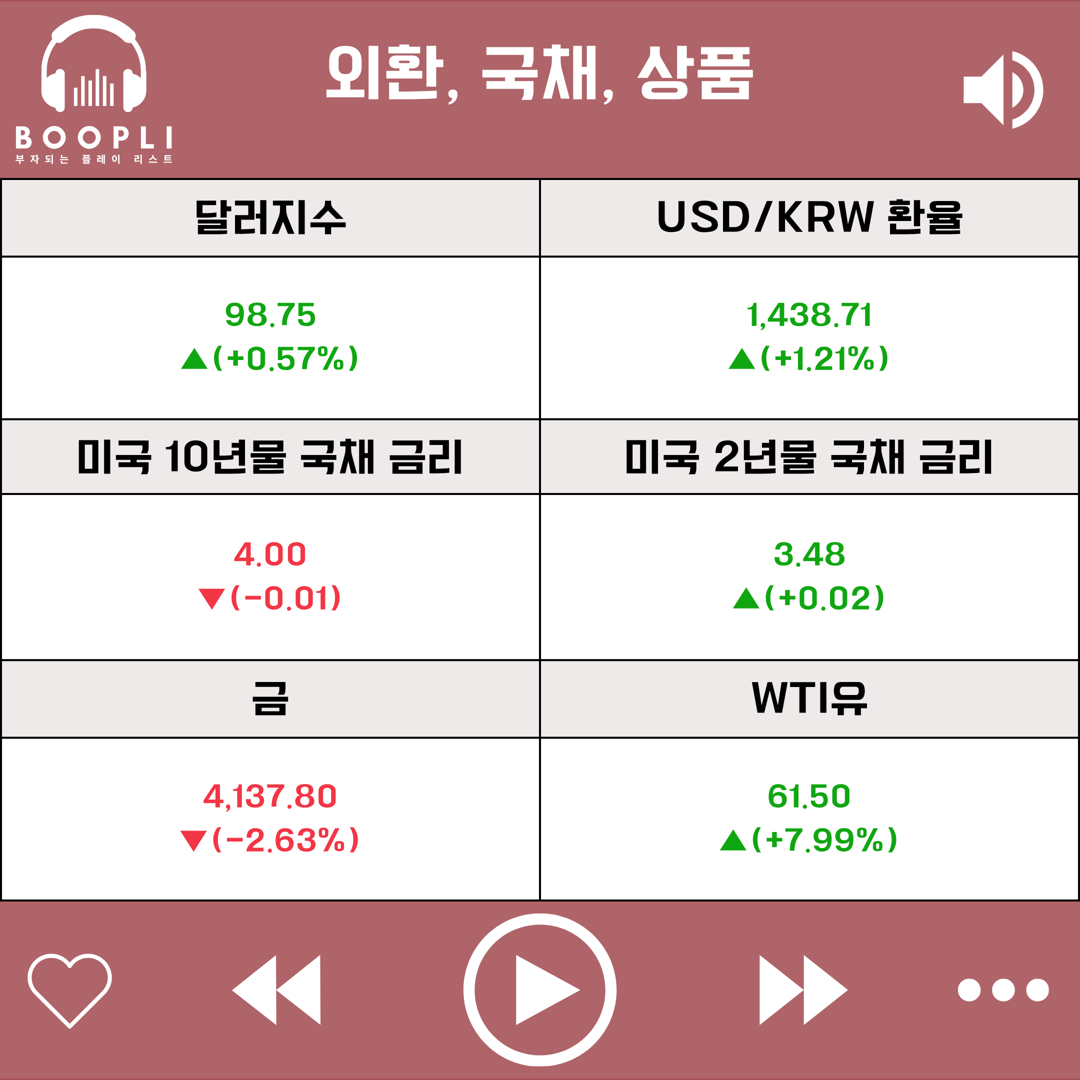 미·중 협상 기대로 무역 긴장이 완화되며 안전자산인 금 가격은 하락했고, 미국의 러시아 석유 기업 제재로 국제 유가인 WTI유 가격은 상승했다.