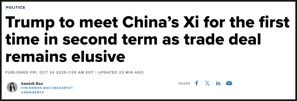 이어 미국 방송 보도에 따르면 Donald Trump(도널드 트럼프) 대통령과 Xi Jinping(시진핑) 국가주석이 10월 30일 APEC 정상회의에서 회담을 가질 예정이라고 전해졌습니다. 미·중 관계 개선은 위험자산 선호 심리를 되살릴 수 있는 강력한 촉매로 작용할 수 있습니다.