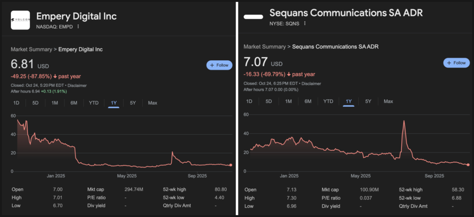 엠페리의 주가는 발표 이후 10% 하락했고, 올해 들어 60% 넘게 빠졌습니다. 시콴스 역시 발표 이후 27% 하락했습니다. 단순한 매입만으로 시장 분위기를 바꾸긴 어렵다는 점이 드러난 셈입니다.