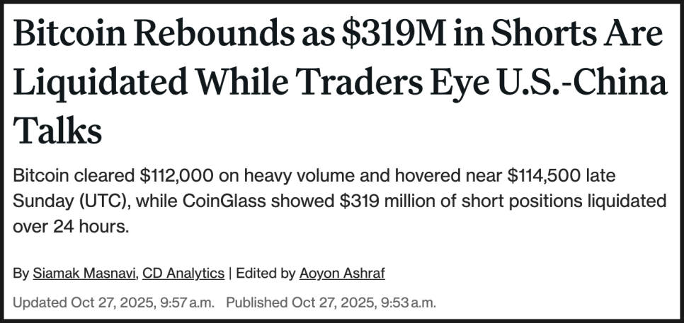 이제 시장은 다시 한 번 갈림길에 서 있습니다. 비트코인 재무 기업의 할인된 밸류에이션, 연준의 금리 정책, 미·중 외교 이벤트, 그리고 숏 포지션 청산 흐름이 모두 맞물리면서 시장 분위기가 바뀔 가능성이 점점 커지고 있죠. 연말로 갈수록 시장의 방향이 보다 뚜렷하게 드러날 것으로 보입니다.