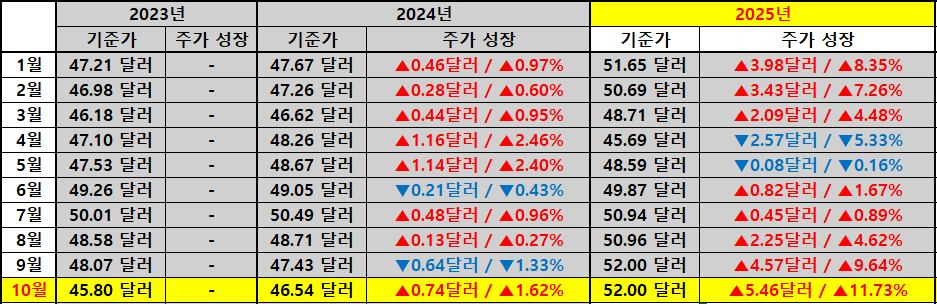 주가 역시 안정적인 흐름을 보였습니다. 배당락일 기준 주가는 지난해 46.54달러에서 올해 52.00달러로 약 11.73% 상승했습니다. 이는 배당금이 성장하는 동시에 주가도 함께 우상향하고 있음을 보여주는 지표로 단순 고배당 상품이 아닌 ‘총수익형 ETF’로서의 성격을 강화하는 부분이라 판단됩니다.