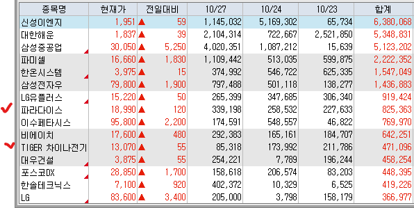 매도 : 유한양행 삼천당제약 삼일제약 한화 LG 포스코퓨처엠 Posco홀딩스 삼성전자(+39.83%) HMM 롯데에너지머티리얼 포스코DX HLB 카카오 JYPEnt 솔브레인홀딩스 대우건설 LG화학 대주전자재료 에코프로 펩트론 상아프론테크 SK이노베이션 씨에스윈드 한전산업 리가겜바이오 에코프로비엠 레이크머티리얼즈 한화비전