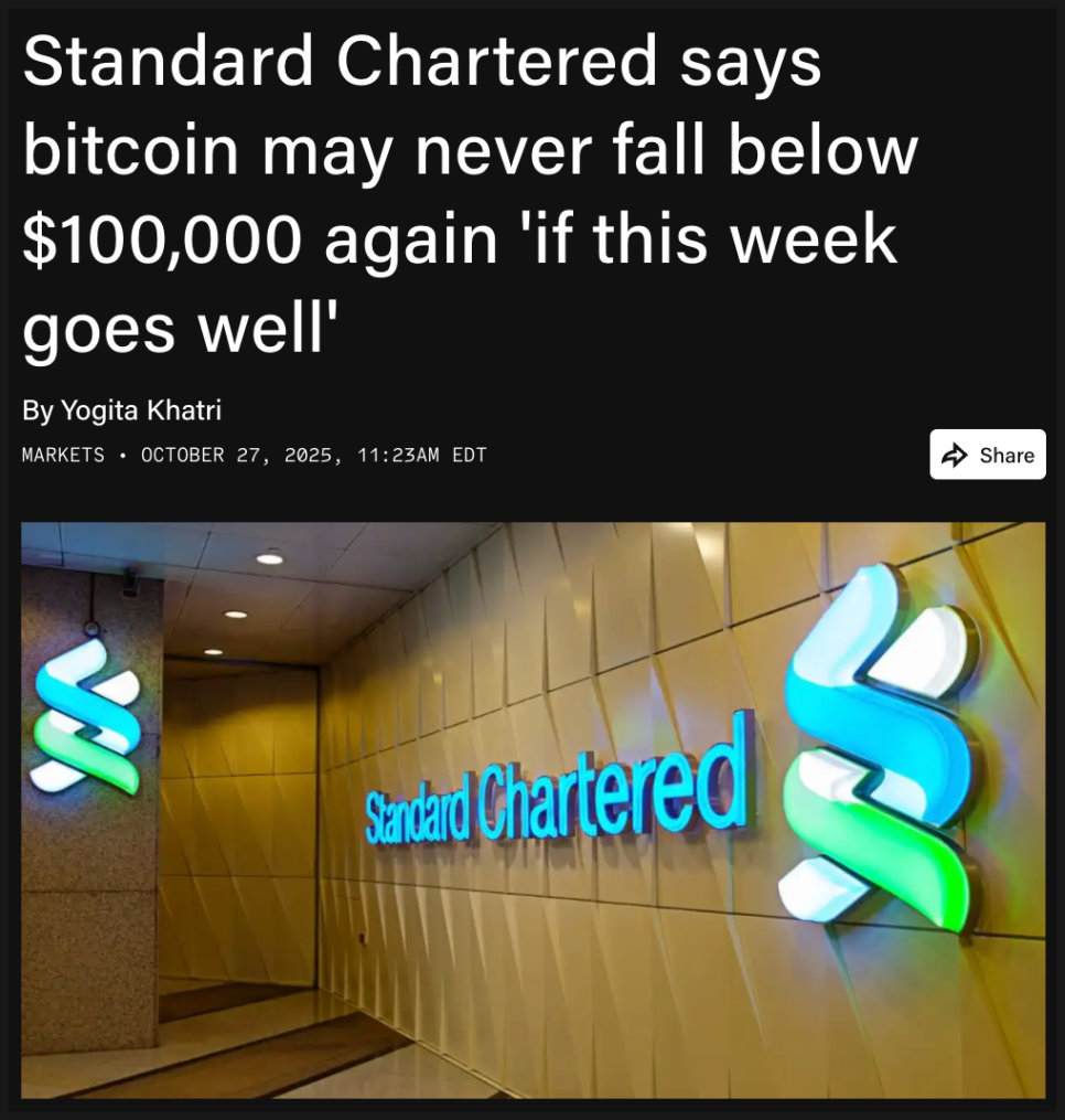스탠다드차타드의 '비트코인 10만 달러 바닥론'