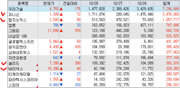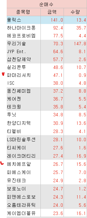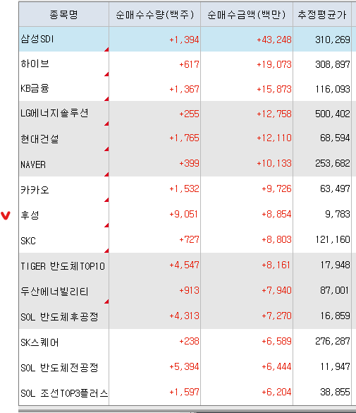 매도 : Posco홀딩스 삼성전자(+41.08%) 삼성SDI HLB 카카오 엔씨소프트 한국첨단소재 셀트리온 이노와이어리스 랩지노믹스 에코프로(+30.98%) 펩트론 풍산 씨에스윈드 실리콘투