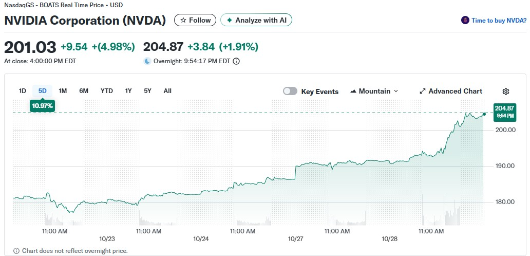 01. 엔비디아 5% 급등. 시총 5조달러에 바짝