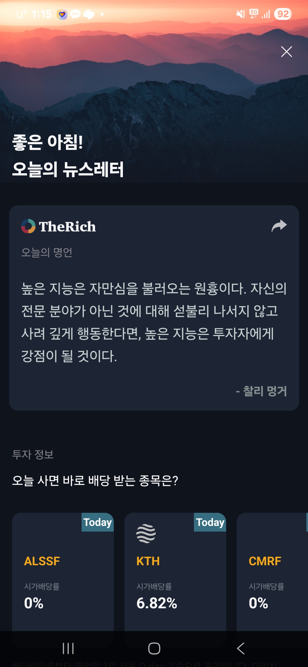 오늘 시장을 보면 이 말이 더욱 와닿습니다. AI와 기술주가 폭발적인 상승을 이어가면서 많은 투자자들이 ‘나도 따라가야 하나’라는 마음을 가지기 쉽지만 멍거의 조언처럼 자신이 충분히 이해한 영역 안에서만 움직이는 것이 결국 가장 큰 방어선이 됩니다. 단기적인 뉴스나 환율, 금리 변동에 일희일비하기보다는 포트폴리오의 구조와 현금흐름이 스스로를 지킬 수 있는지 점검하는 시간이 필요해 보입니다. 오히려 요즘같은 장세에서는 ‘높은 지능’보다 ‘깊은 인내’가 더 큰 자산이 되지 않을까요?