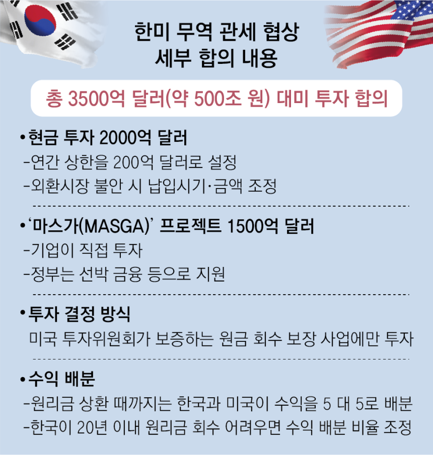 3500억 달러(약 500조 원) 대미(對美) 투자펀드 가운데 2000억 달러를 현금 투자하되 연간 한도를 200억 달러로 제한하기로 한 것