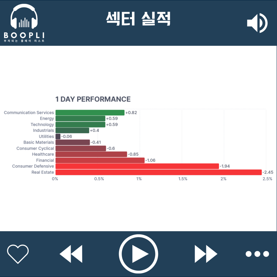 미·중 협상 기대감과 엔비디아 강세, 빅테크 실적 기대로 커뮤니케이션 서비스 섹터가 상승 주도, 이어서 에너지, 기술 순으로 강세