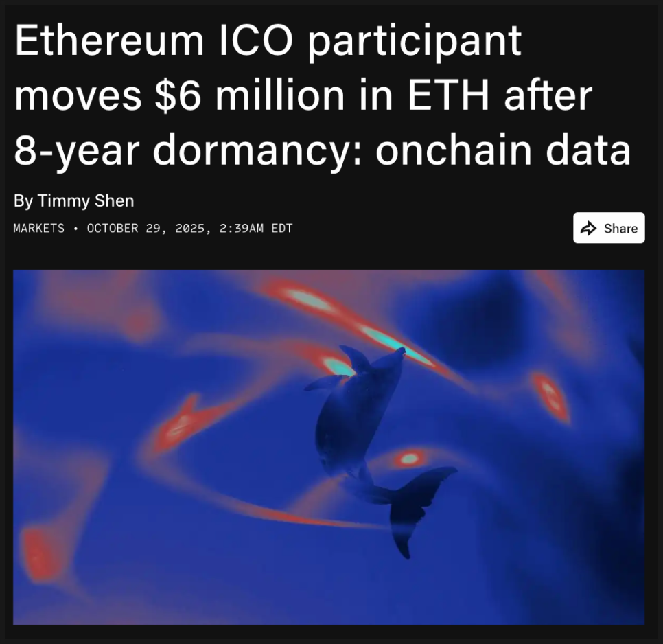 한편, 이더리움의 초기 투자자 중 한 명이 8년 만에 깨어나 시장의 관심을 끌었습니다.