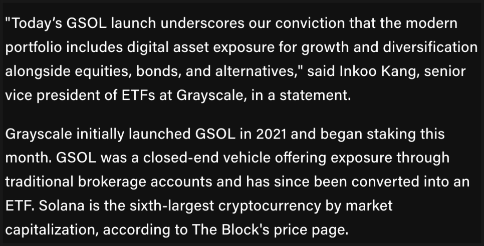 사실 이 ETF는 2021년에 처음 ‘그레이스케일 솔라나 트러스트’로 출시된 후, 이번에 정식 ETF 형태로 전환된 것입니다.