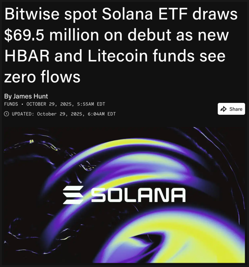 이번 주, 암호화폐 시장의 중심에는 단연 솔라나(Solana) 가 있었습니다. 자산운용사 비트와이즈(Bitwise)가 미국 최초의 현물 솔라나 ETF(BSOL) 를 뉴욕증권거래소에 상장하며, 본격적인 기관투자 시장 진입을 알렸기 때문입니다.