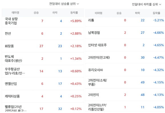 2차전지, 대북, 인터넷, 퓨리오사AI 등