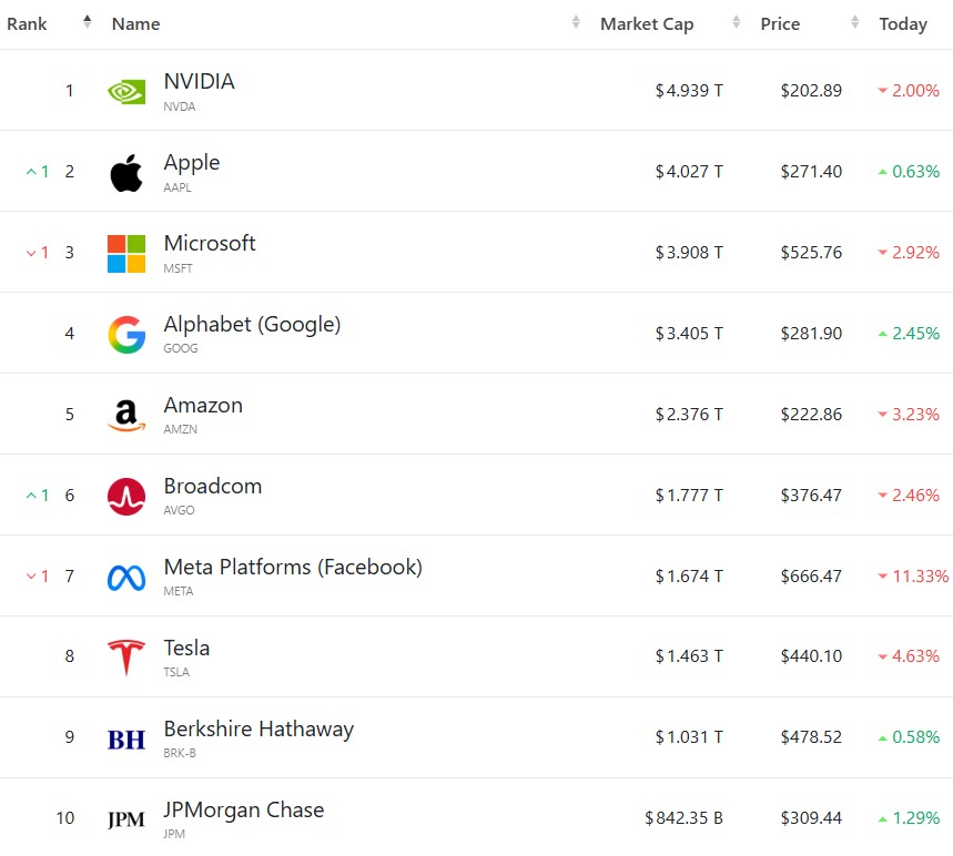 대부분의 빅테크 기업들이 하락 하였는데요. 엔비디아 -2.00%, 마이크로소프트 -2.92%, 아마존 -3.23%, 테슬라 -4.64% 전일 대비 주가가 떨어졌으며, 반면 애플은 +0.63%, 알파벳 +2.45% 상승하면서 거래를 마쳤습니다.