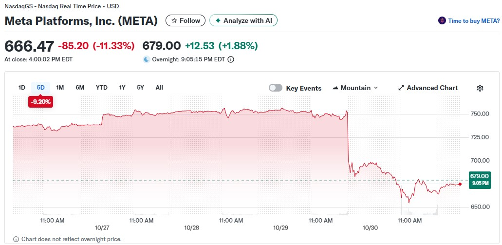 이날 메타 주가가 -11.33% 폭락 하면서 나스닥 하락에 한 몫했는데요. 35조원 규모의 회사채 발행 소식이 전해지면서 주가를 끌어 내렸습니다.
