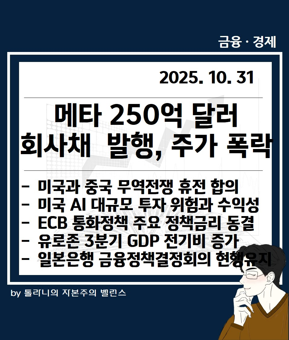 지금까지 '미중 무역전쟁 휴전 합의, 메타 주가 -11.3% 폭락, AI 대규모 투자 위험과 수익성 고찰 필요 등 주요 국가 경제·금융 동향' 관련하여 알아보았는데요.