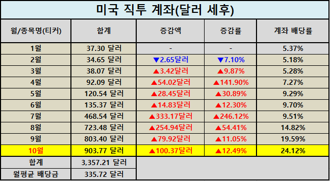 | 월평균 배당금 | 335.72달러 |