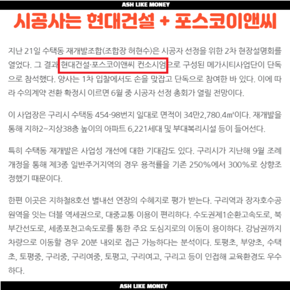 오늘은 구리시 수택2구역 재개발 조합설립인가 완료 풍선효과 분담금 분석입니다.