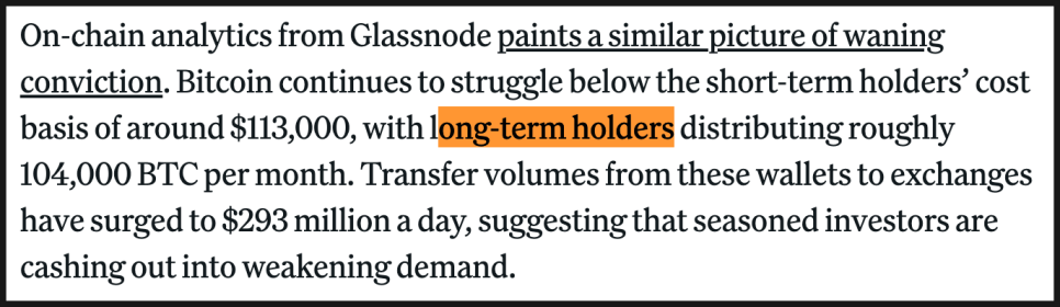 더 주목할 점은 장기보유자(Long-term holders)들의 움직임입니다. 이들은 한 달에 약 10만 4천 BTC를 시장에 내놓고 있으며, 하루 평균 2억 9,300만 달러어치의 비트코인이 거래소로 이동하고 있습니다. 이는 명백히 ‘이익 실현 구간’으로 해석됩니다. 즉, 오랫동안 들고 있던 투자자들조차 현재 시장을 ‘매도 기회’로 보고 있다는 것이죠.