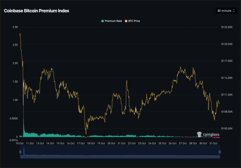 코인베이스(Coinbase)에서 거래되는 비트코인과 글로벌 평균가의 차이를 보여주는 ‘코인베이스 프리미엄’도 0에 근접했습니다. 이 지표는 미국 내 수요 강도를 보여주는 척도인데, 프리미엄이 사라졌다는 건 그만큼 매수세가 약하다는 뜻이죠.