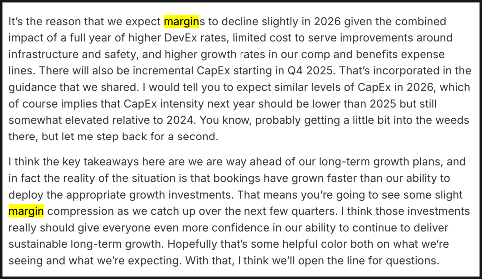 요약하자면, 이번 마진 하락은 비용 통제 실패가 아니라, 성장 속도를 맞추기 위한 전략적 투자라는 의미입니다.