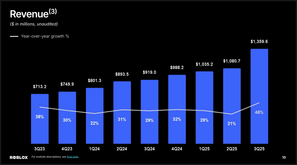 최근 로블록스(Roblox, 티커 RBLX)가 2025년 3분기 실적에서 월가의 예상을 웃도는 성적을 발표했습니다. 매출과 순손실 모두 전망치를 상회하며, 플랫폼이 여전히 강력한 성장세를 보이고 있음을 입증했죠.