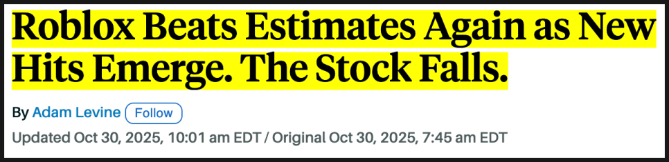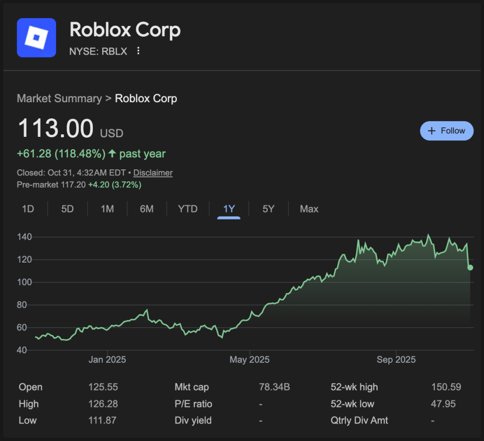 2025년 10월 31일에 다룰 종목은 바로 게임 회사 로블록스입니다.