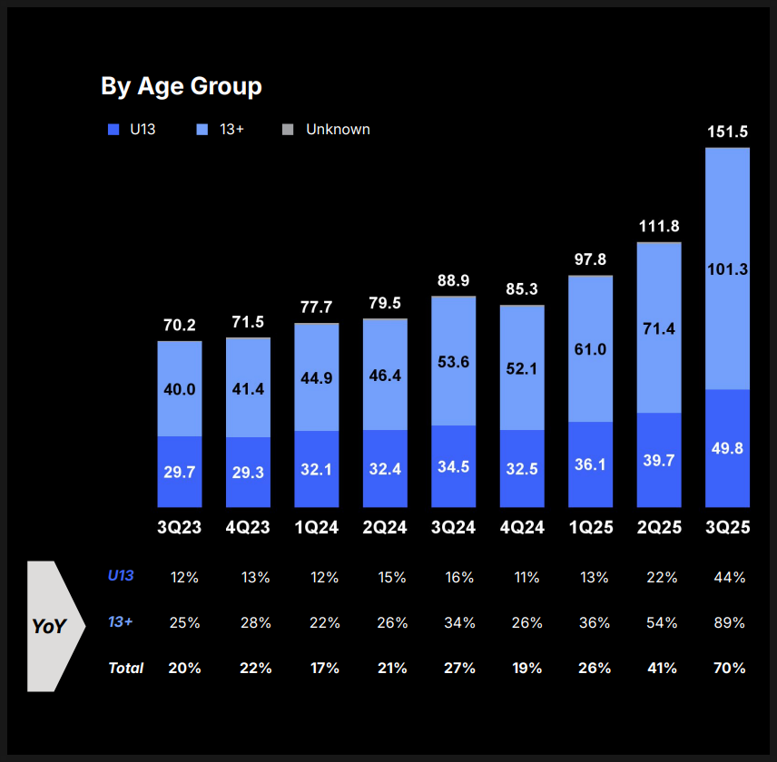 또한 이용자 연령층도 빠르게 변화 중입니다. 현재 전체 이용자의 3분의 2가 13세 이상으로, 예전보다 훨씬 성숙한 연령대가 주축을 이루고 있습니다. 이는 광고나 유료 콘텐츠 수익화에도 긍정적인 변화죠.