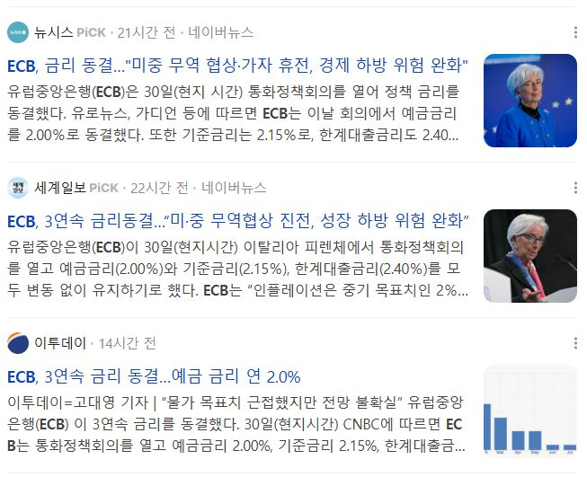 ECB는 주요 정책금리를 동결하고 데이터 의존 및 회의별 접근 방식을 재확인. 라가르드 총재는 성장에 대한 하방 위험이 일부 완화되었다고 평가