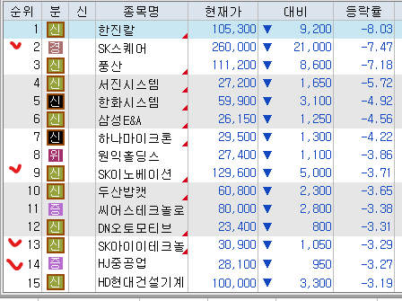 반면 방산주에서 차익실현 물량이 출회되며 하락