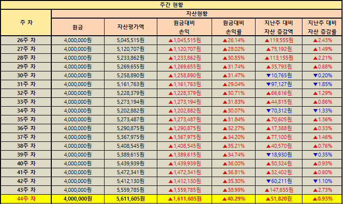 | 원금대비 손익(률) | +1,611,605원 / +40.29% |