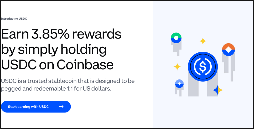 게다가 테더를 이어 전 세계 스테이블코인 시총 2위를 기록하고 있는 USDC의 흐름도 흥미롭습니다. 미국 최대 암호화폐 거래소인 코인베이스(Coinbase)는 USDC 보유자에게 연 3.85% 이자를 지급하고 있는데요. 발행사인 서클(Circle)이 아닌, 거래 플랫폼이 대신 이자를 주는 구조이기 때문에 법의 규제를 교묘하게 피하고 있죠. 이걸로 사람들을 USDC를 구매하고 보유하도록 이끄는 겁니다. 따라서 앞으로 테더도 수익 분배 방식을 바꿔야 할 압박을 받을 가능성이 있습니다.