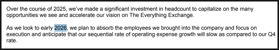 3분기 말 기준 직원 수는 4,795명으로 전년 대비 12% 증가했으며, 4분기부터는 인력 증가 속도를 완화해 비용 효율화 중심의 운영 체제로 전환할 예정입니다. 이런 맥락에서 CFO 알레시아 하스(Alesia Haas)는 “2025년은 인력 확충과 인수에 집중한 시기였으며, 2026년에는 이를 흡수하고 실행에 집중할 계획”이라고 밝혔습니다.
