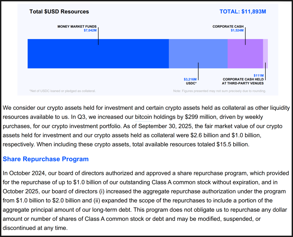 한편 코인베이스의 보유 현금은 118억 달러, 순현금은 47억 달러이며, 3분기 중 비트코인 2억 9,900만 달러를 추가 매입했습니다. 또한 자사주 매입 프로그램 규모를 10억 달러에서 20억 달러로 확대하여 주주환원 정책을 강화했습니다.