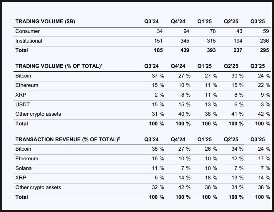스테이킹(암호화폐 예치 보상) 매출도 강세였습니다. 3분기 스테이킹 수익은 1억 8,500만 달러로 28% 증가했는데, 이더리움(ETH)과 솔라나(SOL)의 가격 상승 덕분이었습니다. 이자 및 대출 수익 역시 6,500만 달러로 9% 늘었는데, 기관 고객 대출 잔액이 12억 달러를 넘어서며 안정적인 성장을 이어갔습니다.