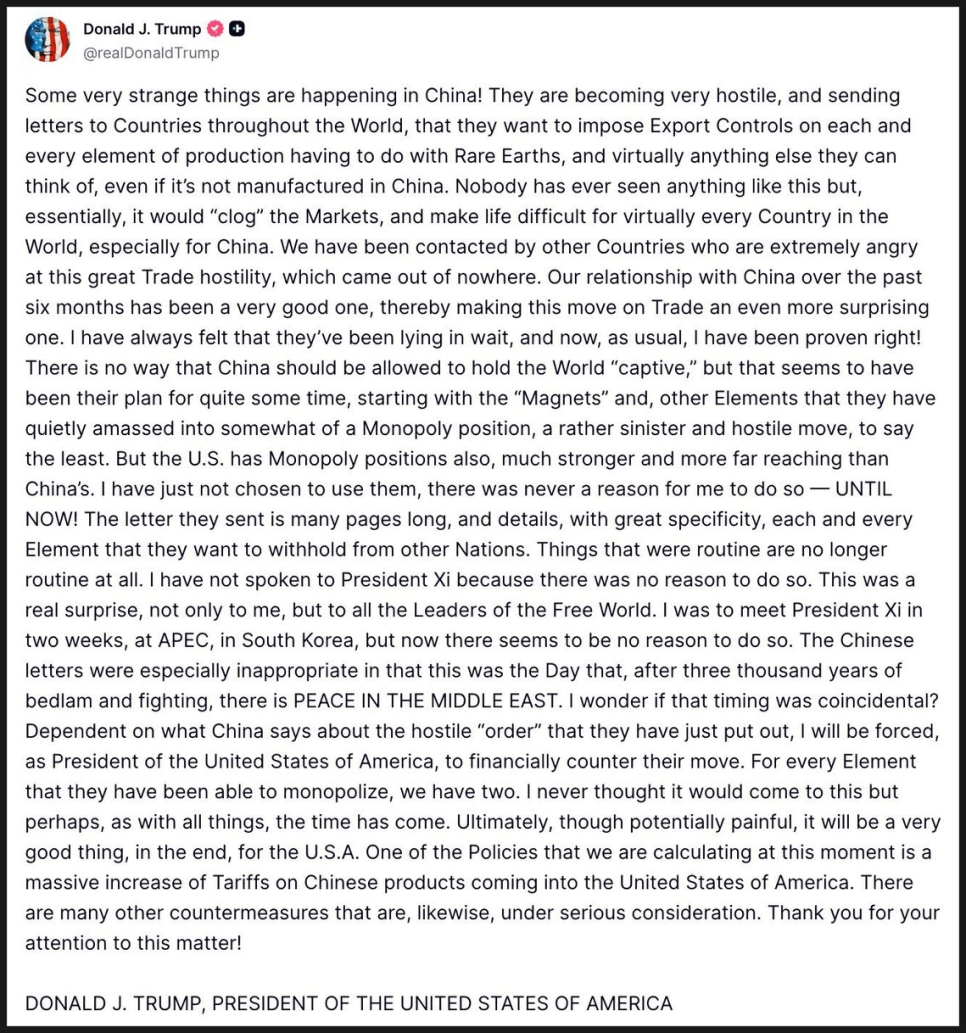 결정적인 순간은 10월 10일이었습니다. 도널드 트럼프 미국 대통령이 중국을 상대로 희토류 관련 새로운 관세를 경고하면서 글로벌 시장에 긴장이 돌기 시작했죠. 이 발언은 곧바로 전통 금융시장에 ‘리스크 오프(risk-off)’ 움직임을 촉발했습니다. 쉽게 말해 투자자들이 위험자산에서 돈을 빼 안전자산으로 옮기기 시작한 겁니다. 이런 상황에서 비트코인 같은 고위험 자산은 당연히 타격을 받습니다.
